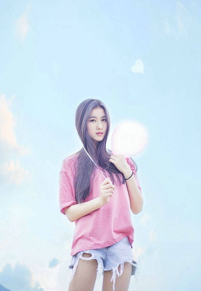 青春阳光俏皮清纯长发美女彩色夏天户外可爱甜美写真
