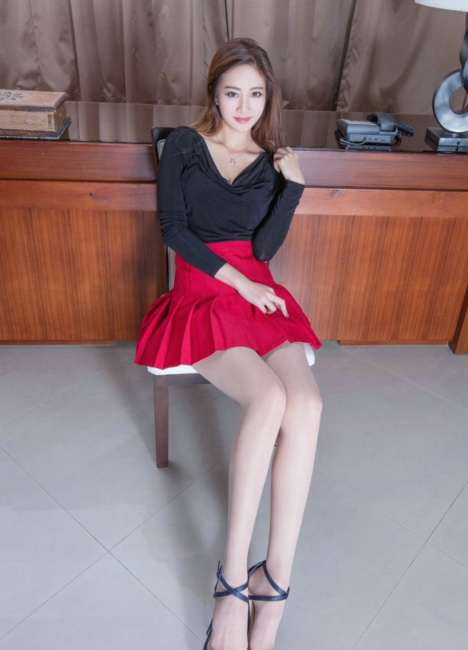黑上衣红裙迷人风情女神气质丝袜美腿诱惑妩媚娇嫩写真