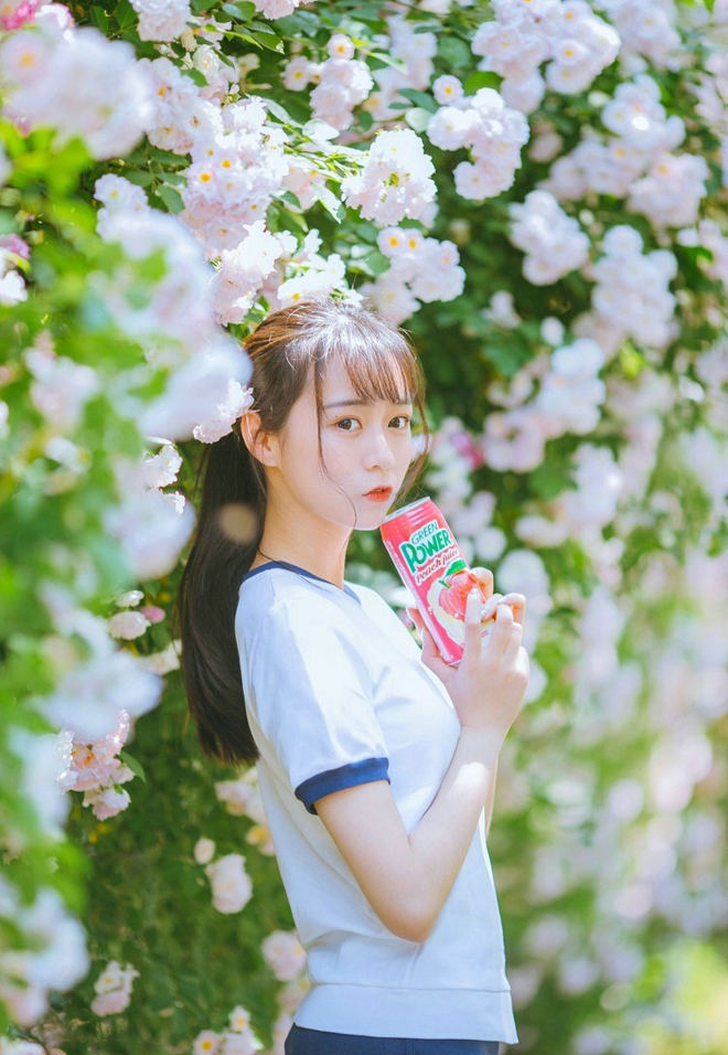 校园墙角盛开蔷薇少女娇艳阳光靓丽唯美写真-套图吧