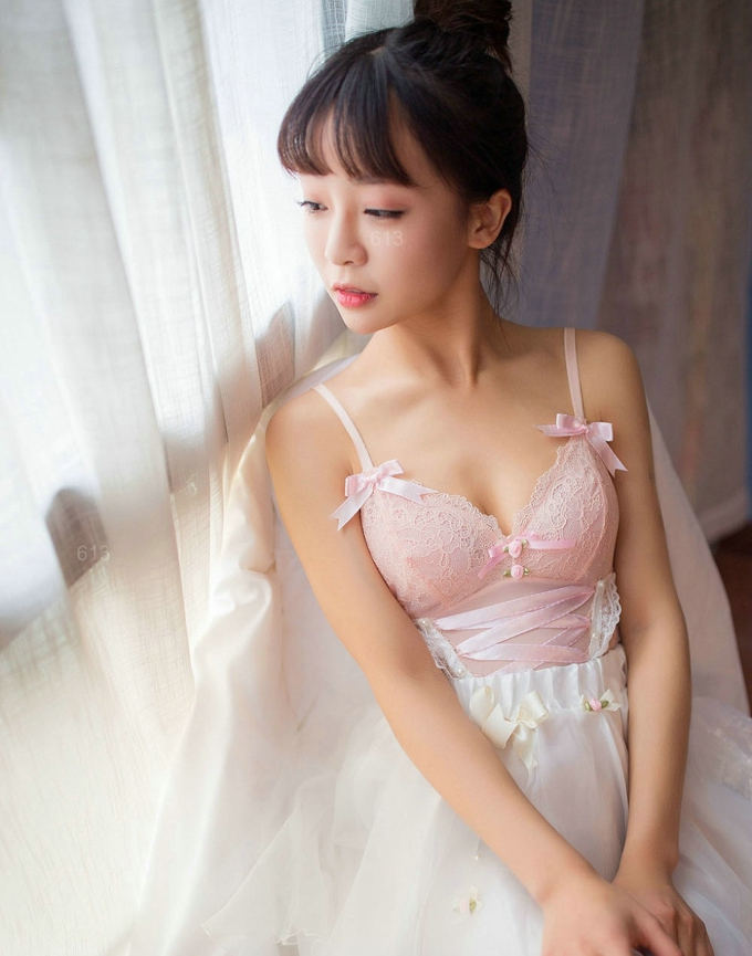 粉色糖果萌萌女居家蕾丝连体衣透视性感诱惑迷人气质妩媚写真-套图吧
