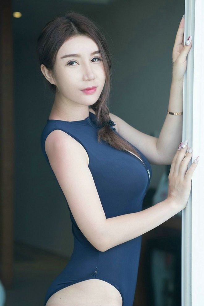 前凸后翘美女蓝色连体衣大胆户外火辣销魂诱人写真