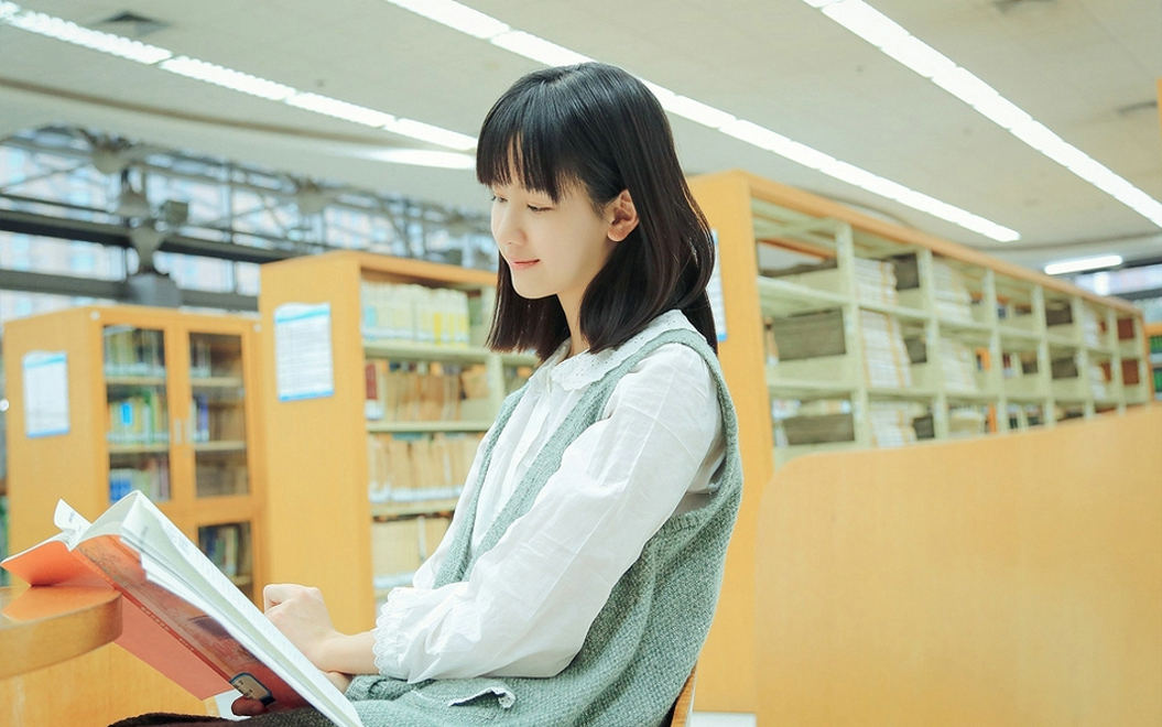 清纯学生妹陈都灵图书馆清新俏皮可爱唯美迷人写真