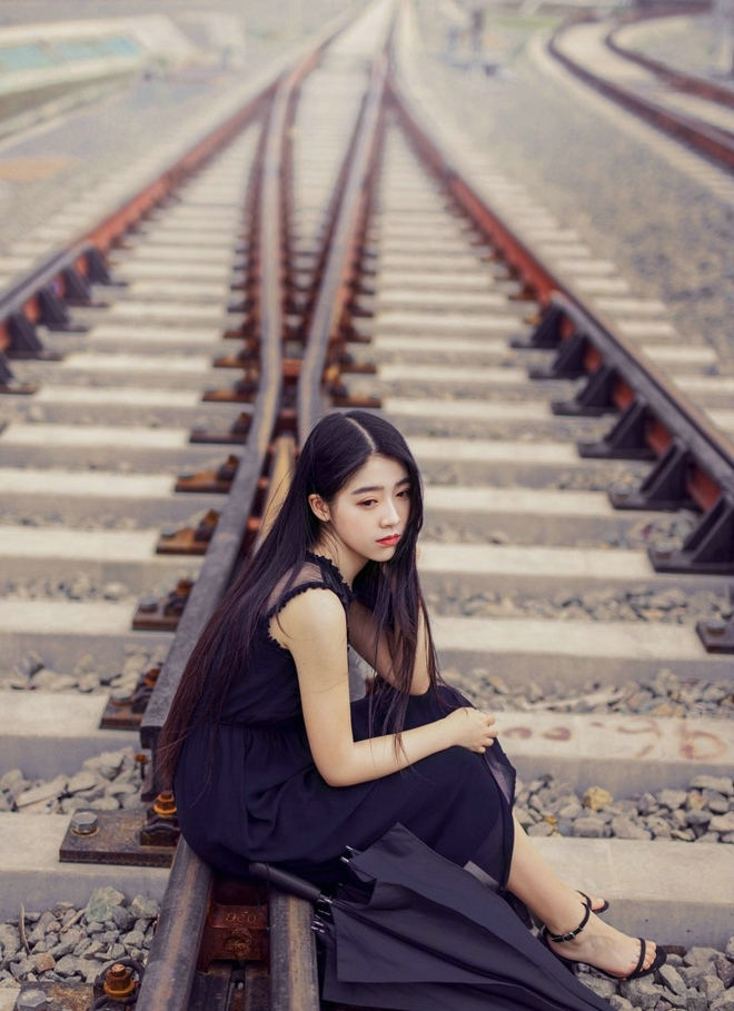 长直发清纯美女薄纱长裙户外娇巧秀气优雅唯美写真-套图吧
