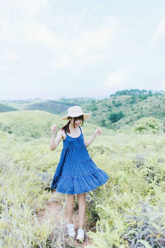 清纯90后美女蓝色吊带裙小清新户外可爱俏皮唯美写真-套图吧