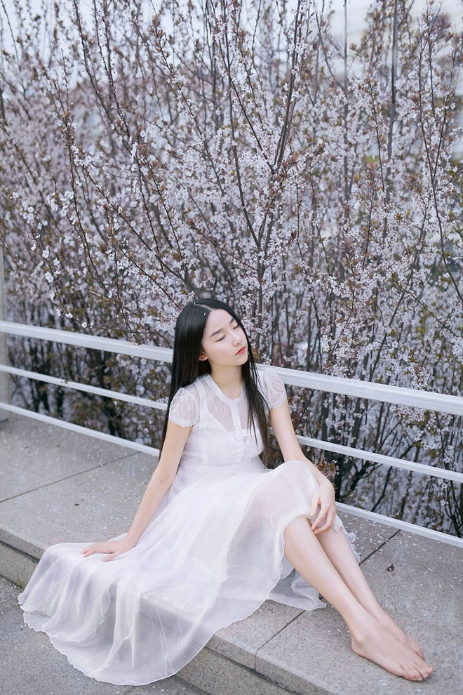 清纯长发单眼皮美女白色长裙户外清新靓丽迷人写真-套图吧