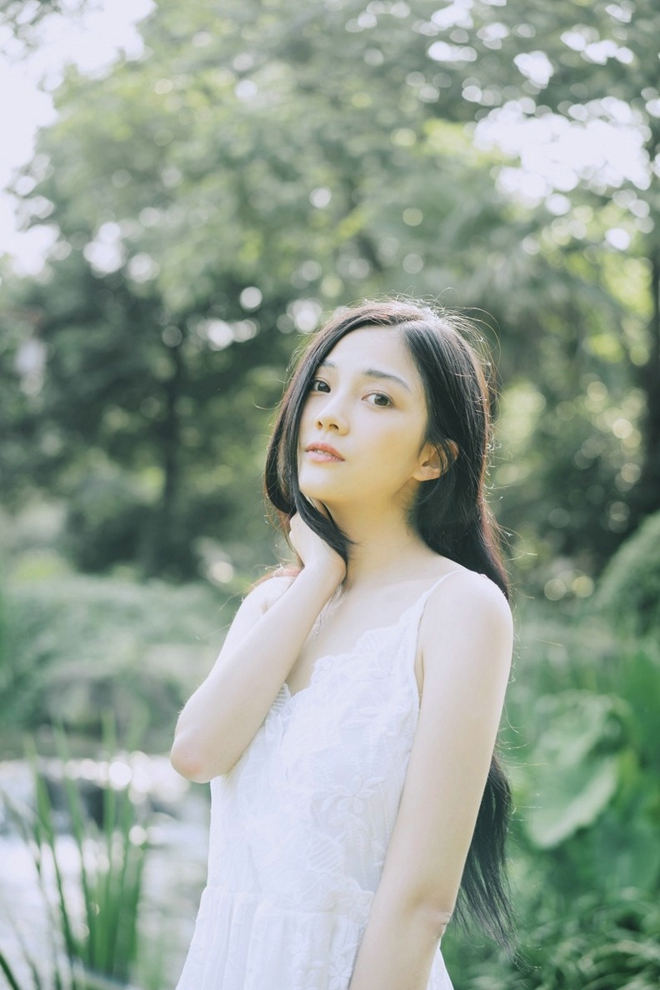 素颜清纯美女白色吊带裙户外娇羞秀气优雅唯美写真