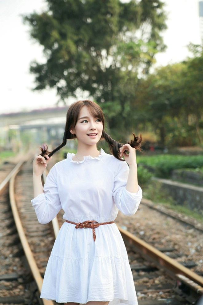 清新气质户外迷人美女废旧铁道清纯阳光甜美靓丽写真-套图吧