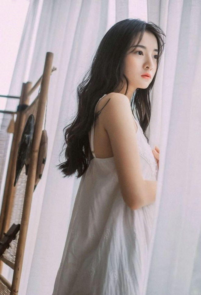 白色吊带裙清纯单眼皮美女居家慵懒白皙唯美写真