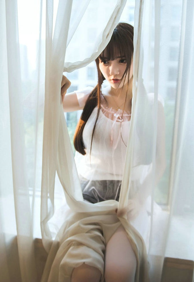 双马尾辫嫩模小如镜傲人上围牛仔短裤性感白丝袜美腿妩媚写真