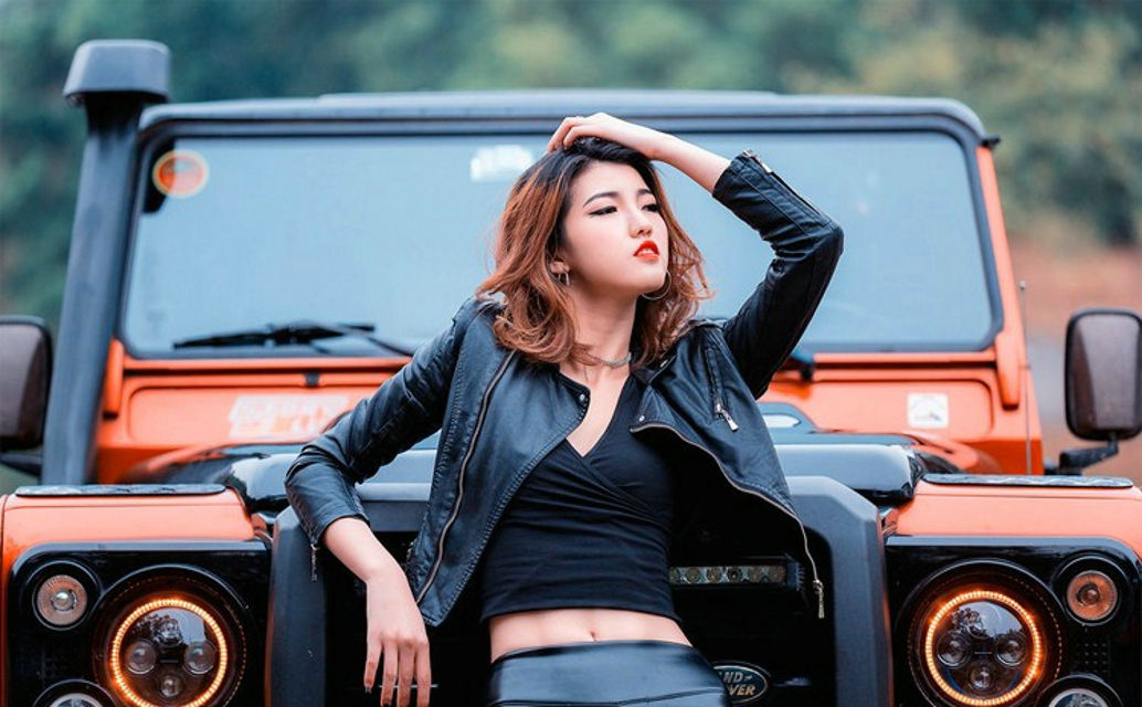 性感撩人红唇皮衣越野车模狂野热辣迷人写真