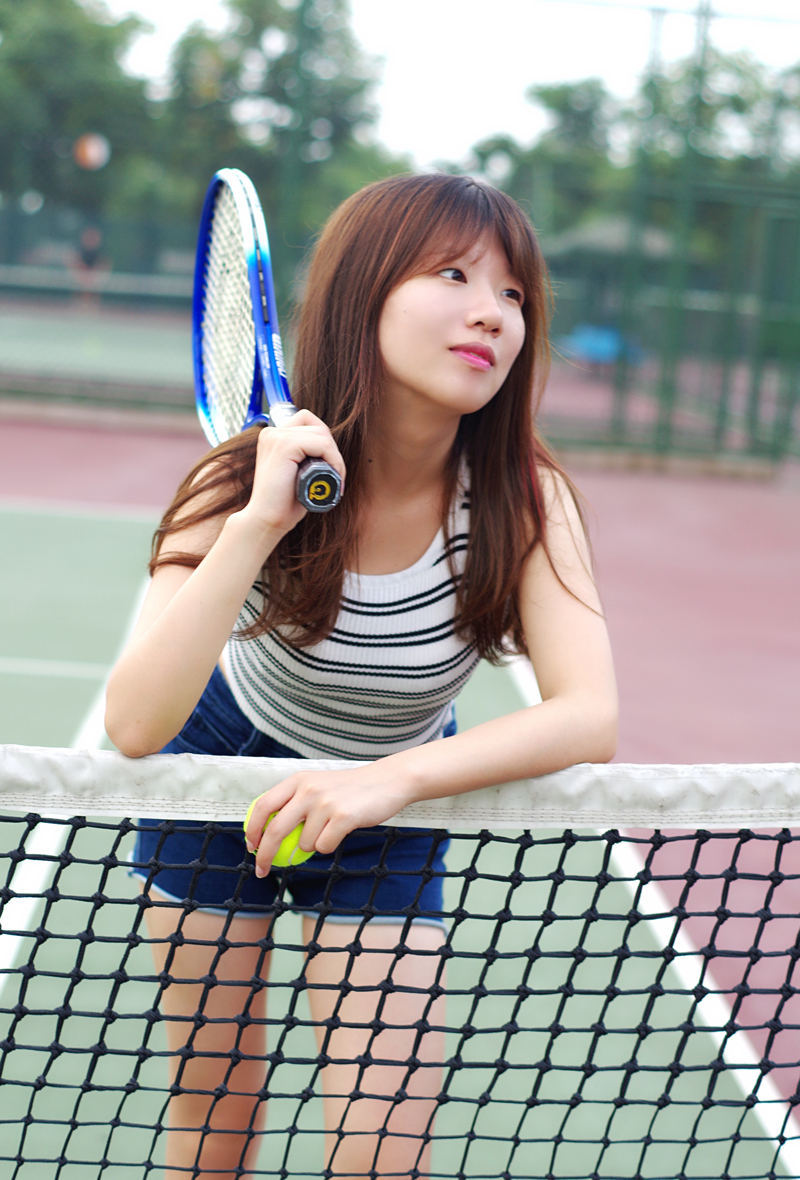 纤瘦美女条纹露脐装性感网球写真-套图吧
