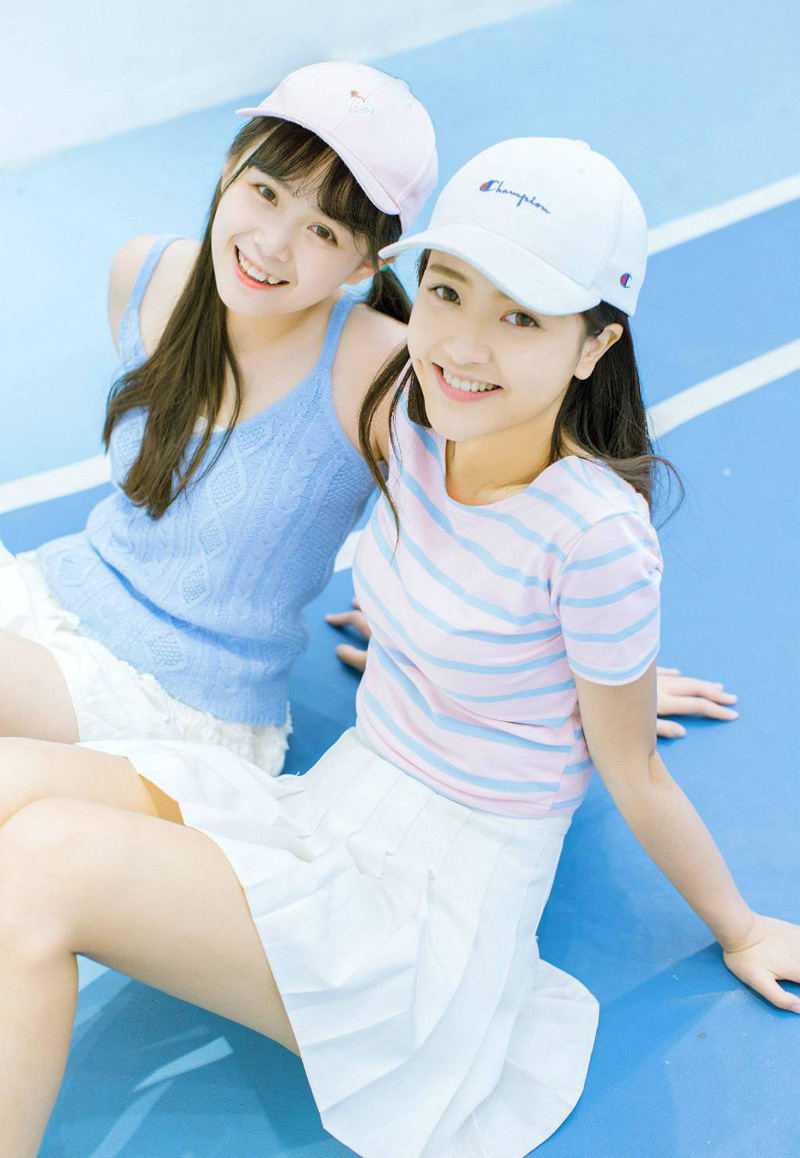 可爱姐妹花网球场亲密写真