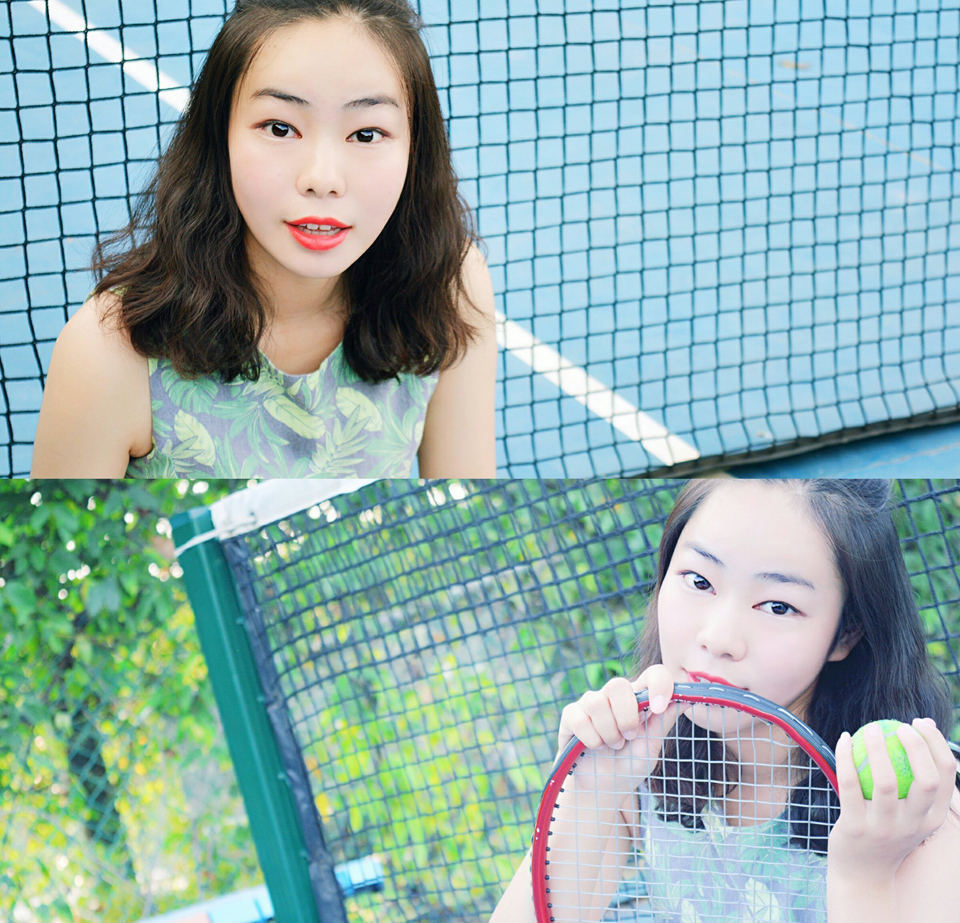 红唇高挑网球少女挥汗写真