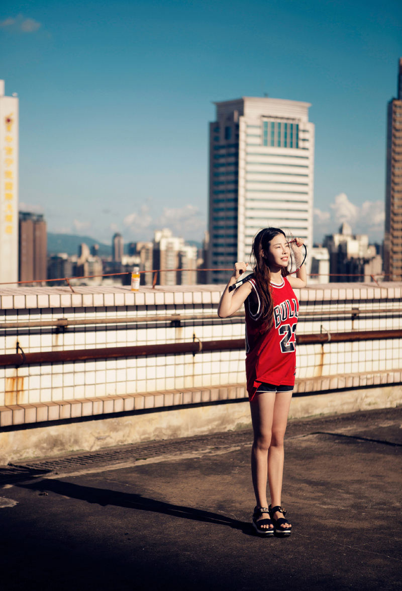 运动服少女天台俏皮活力写真