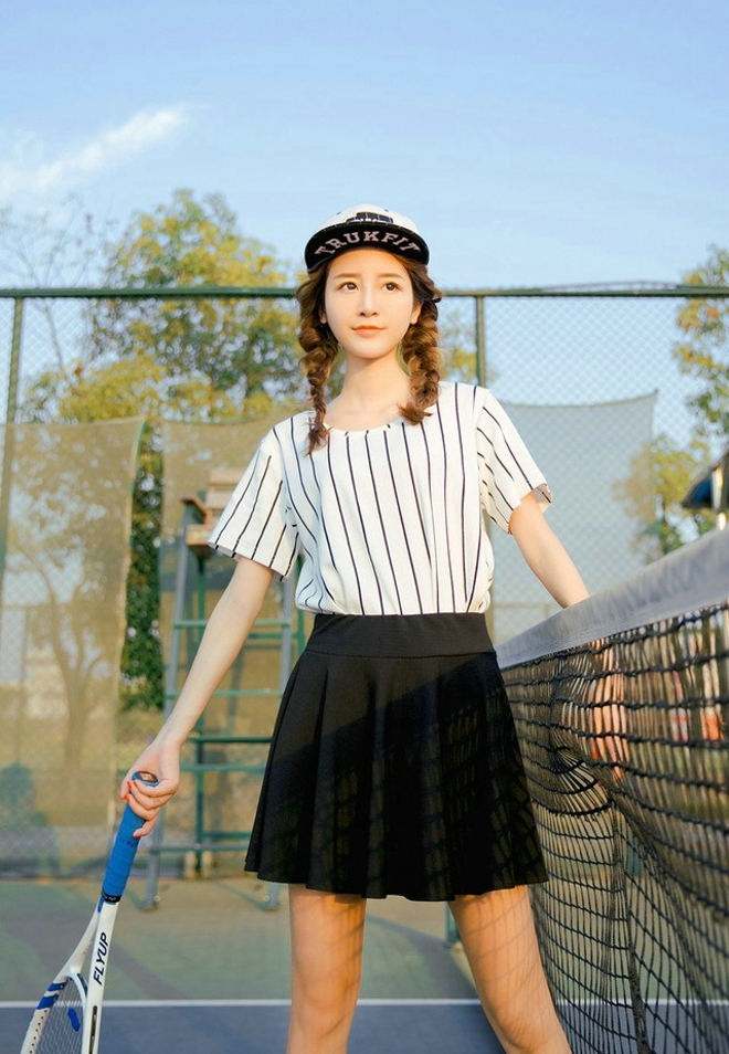 清纯活泼阳光娇嫩女生挥舞着网球拍清新球场俏皮可爱写真-套图吧
