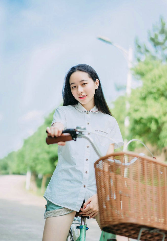 夏日清纯阳光骑上单车被风吹过空气感少女清新可爱唯美户外写真-套图吧