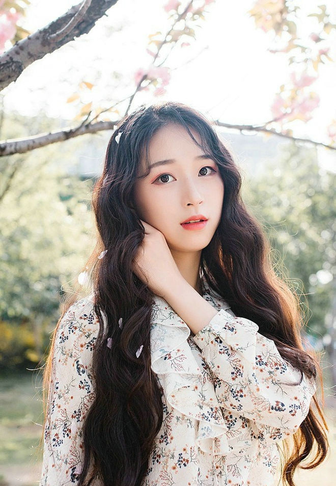 妆容精致樱花树下清纯娇嫩美女唯美阳光户外写真-套图吧