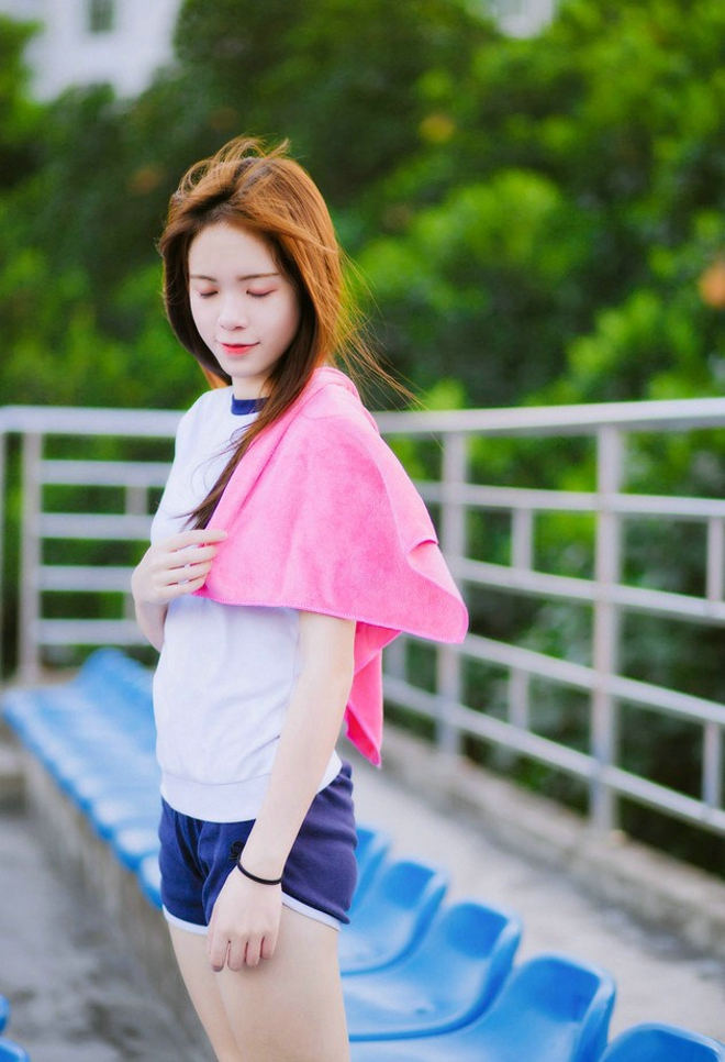 清纯娇嫩阳光运动服长腿美女可爱俏皮户外写真