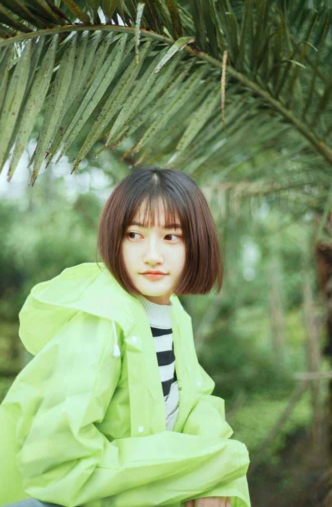 清纯雨天短发美女清新可爱俏皮甜美户外写真-套图吧