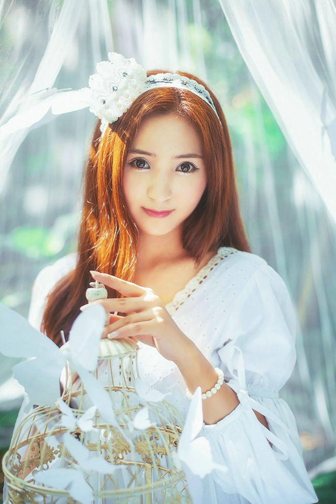 室外小树林纯白长裙唯美仙子清新优雅娇嫩写真-套图吧