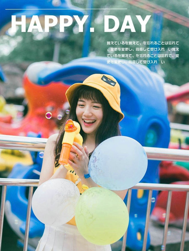 夏日游乐场清纯可爱阳光吹泡泡女生清新娇雅俏皮唯美写真-套图吧