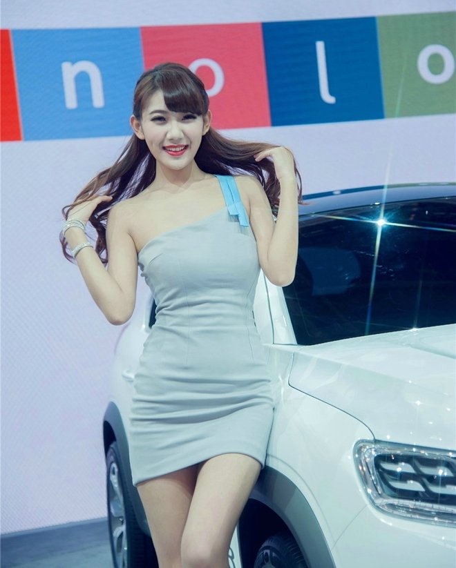 靓丽香车美女展台兜嘴可爱秀气娇媚写真