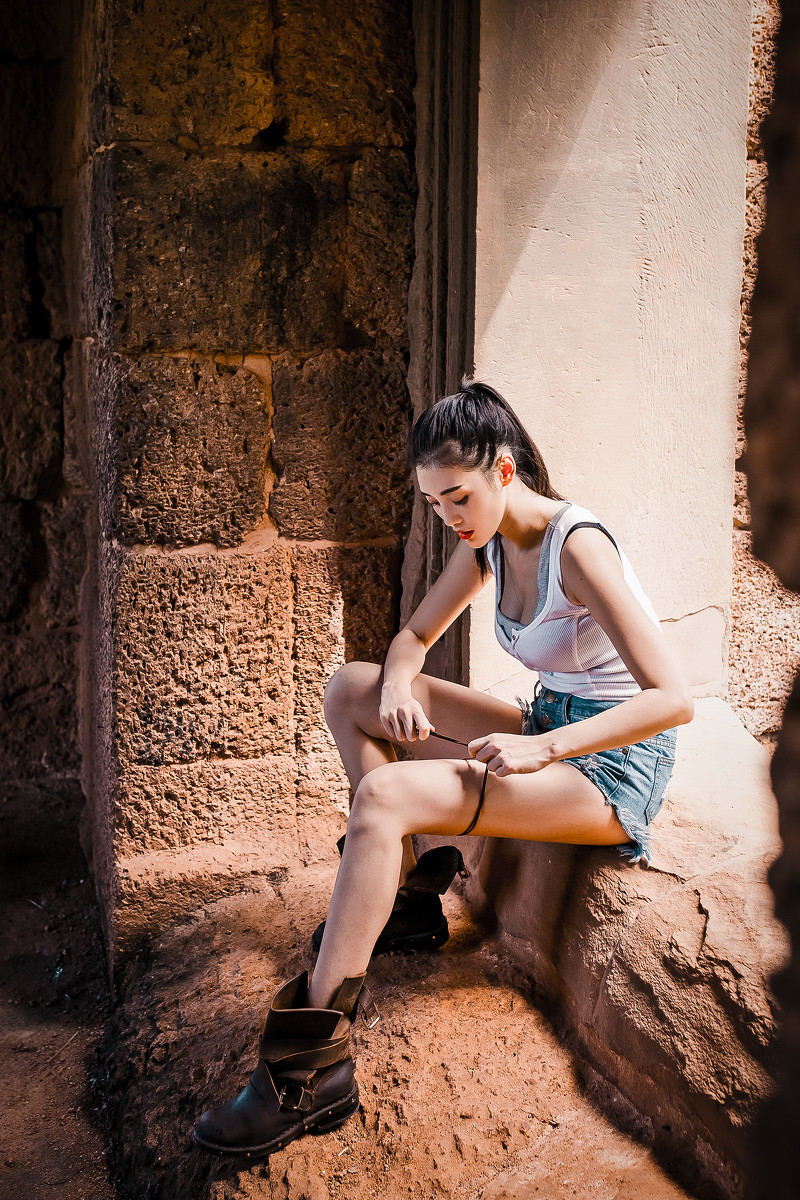 前凸后翘牛仔短裤美女浓妆艳丽气质写真