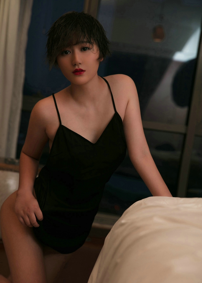 瑶瑶黑色吊带裙美胸美腿诱惑写真-套图吧