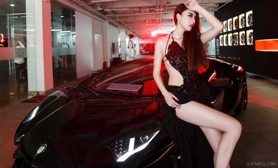 红唇车模惊艳纯黑世界里的性感妖娆诱惑