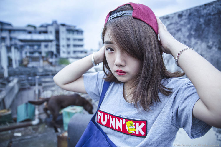 天台上的俏皮姑娘红唇诱惑
