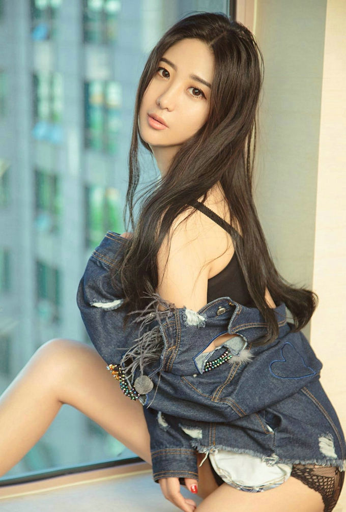 嫩模西亚破洞牛仔夹克性感黑色内衣写真-套图吧