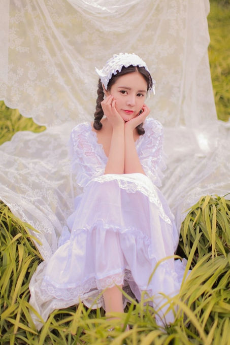 清纯麻花辫美女蕾丝白裙唯美外拍写真-套图吧