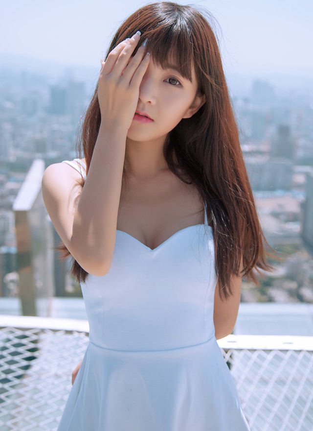 长发美女天台清新迷人写真-套图吧