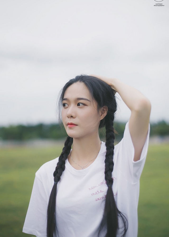 神情忧郁的清纯美女校花校园写真