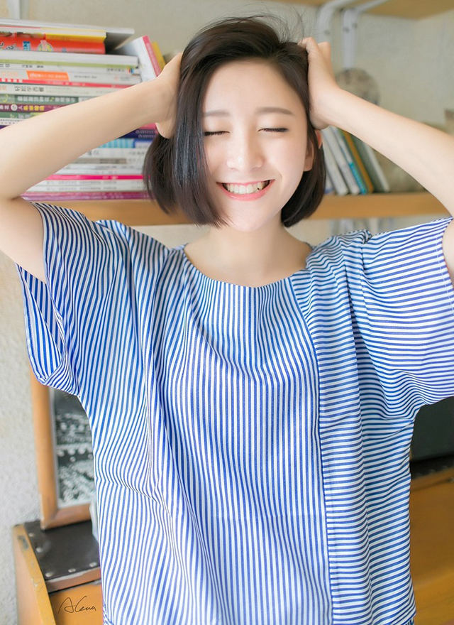 瓜子脸清纯短发气质美女迷人写真-套图吧