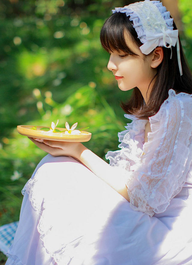 清纯瓜子脸大眼美女白色长裙户外美照-套图吧