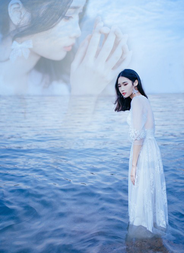 清冷蕾丝美女赤脚站立湖中唯美写真