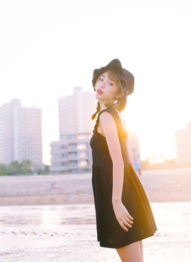 吊带小黑裙清纯淑女范海滩边写真-套图吧