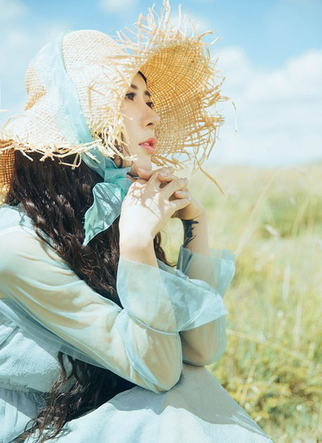 湖水绿薄纱长裙美女美轮美奂高清草原写真-套图吧