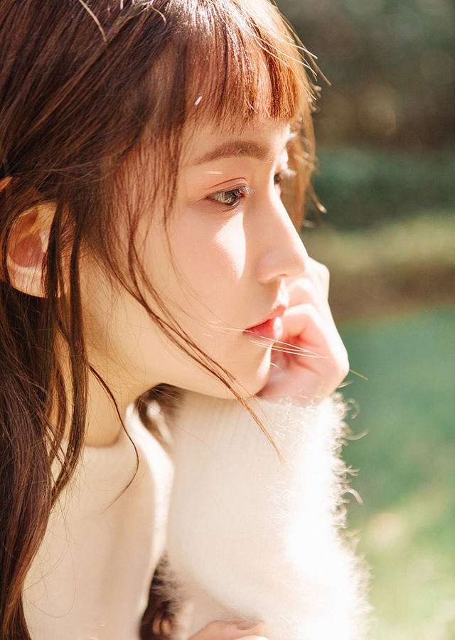 纯白色毛衣软萌妹子冬日阳光下写真-套图吧