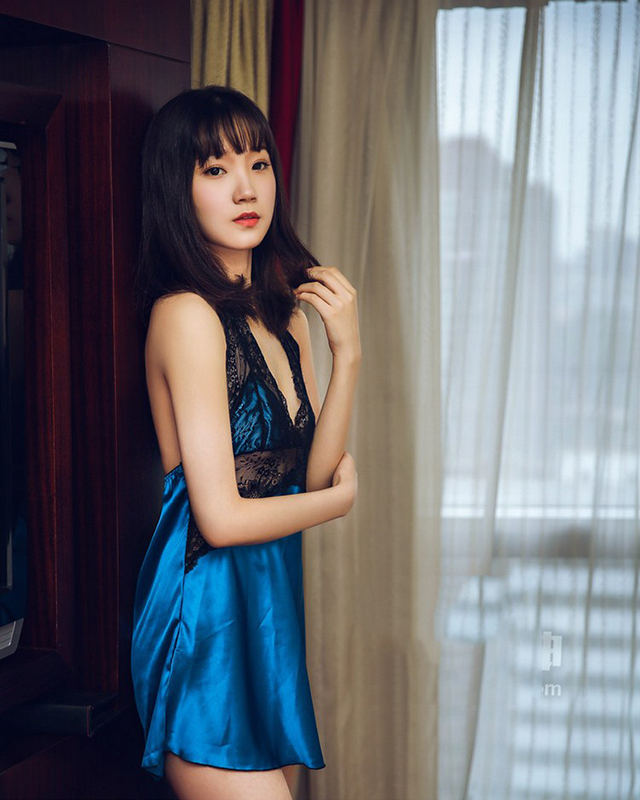 美腿小蜜臀羞涩嫩模露背蕾丝蓝色睡衣写真-套图吧
