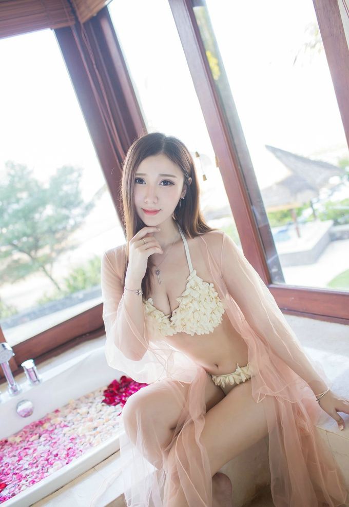 花瓣浴性感嫩模淼淼萌萌哒比基尼写真
